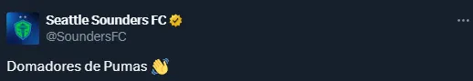 Todo comenzó tras el último gol de Pumas, cuando la cuenta de Seattle Sounders escribió “Nada nuevo”, lo cual acompañó con un emoticono de bostezo. Por su parte, el anuncio del resultado final fue catalogado como “Domadores de Pumas”.