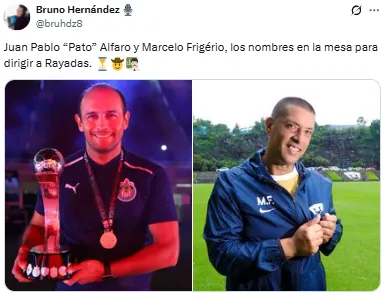 De acuerdo con la información del periodista Bruno Hernández, ya hay un posible destino para Frigério y es que Rayadas podría ser el próximo equipo que dirija en la Liga MX Femenil. Sin embargo, la misma fuente confirma que no es la única opción, sino que ahora en el radar también está el “Pato” Alfaro, extécnico de Chivas.
