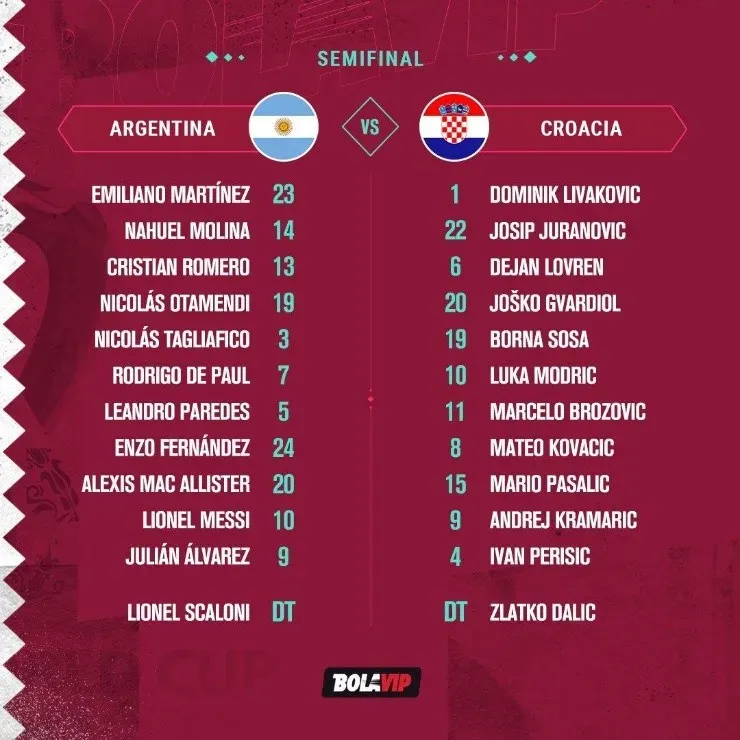 Los dirigidos por Lionel Scaloni llegan a esta instancia tras haber vencido a Australia en octavos de final y después de uncaliente partido ante los Países Bajos, con quienes igualaron 2 a 2 en los 120 y luego derrotaron por la vía de los penales. Del otro lado, los dirigidos porZlatko Dalić habían demostrado al mundo ser capaces de todo, con la eliminación a Japón en el primer partido de los playoffs y sobre todo contra Brasil, a quienes llevaron a los penales en un gran encuentro para luego dejarlos sin chances.