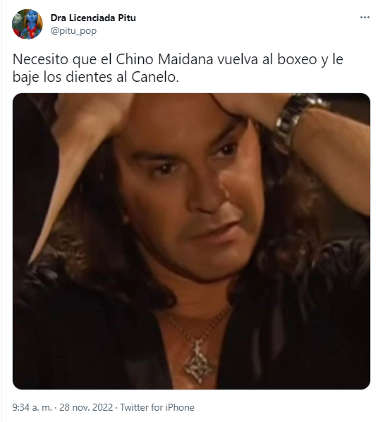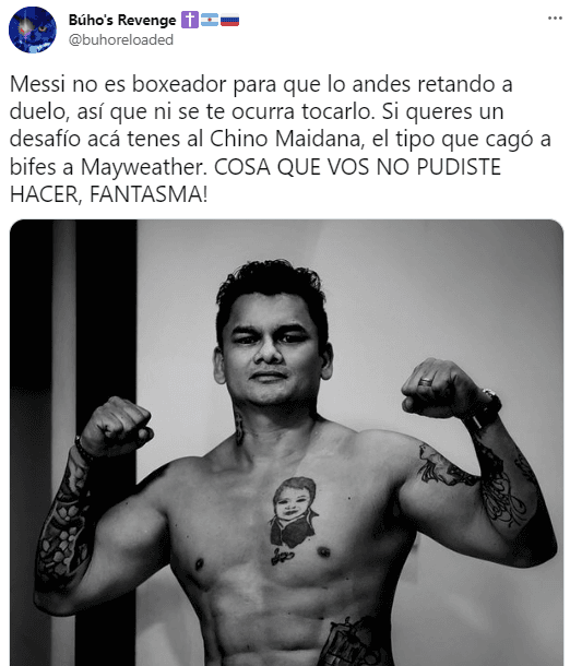 “Messi no es boxeador para que lo andes retando a duelo, así que ni se te ocurra tocarlo. Si queres un desafío acá tenes al Chino Maidana, el tipo que cagó a bifes a Mayweather. COSA QUE VOS NO PUDISTE HACER, FANTASMA!”, escribió un usuario. “Necesito que el Chino Maidana vuelva al boxeo y le baje los dientes al Canelo”, escribió otro. ¿Aparecerá El Chino para poner orden?