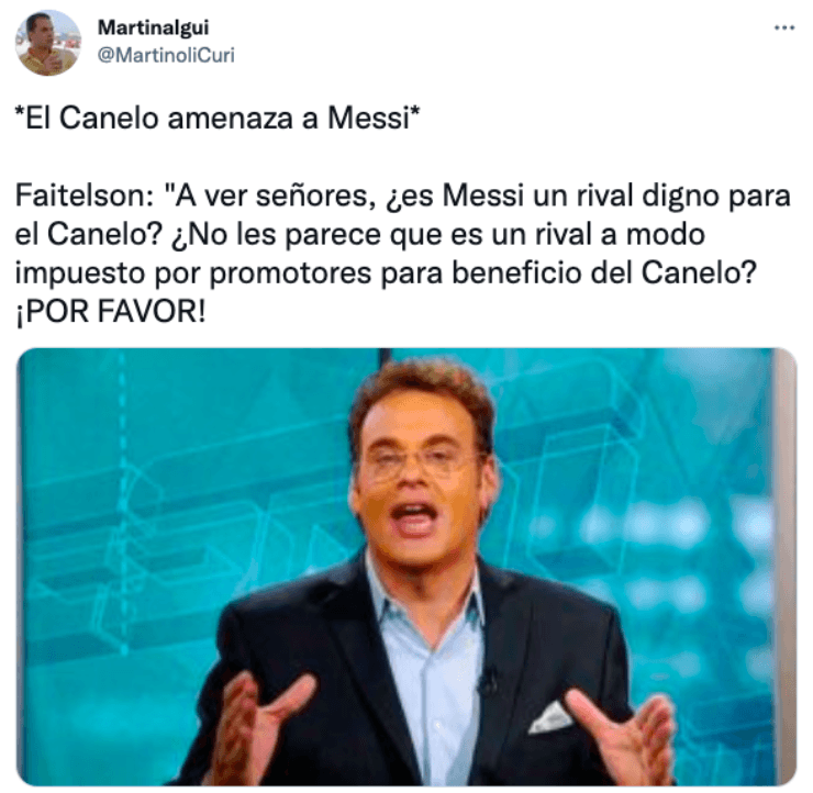 La discusión no pasó desapercibida y los usuarios reaccionaron con su particular sentido del humor. Es por eso que en Bolavip te presentamos los mejores memes sobre esta sorpresiva discusión que tuvo a Canelo, Faitelson y Messi como protagonistas.