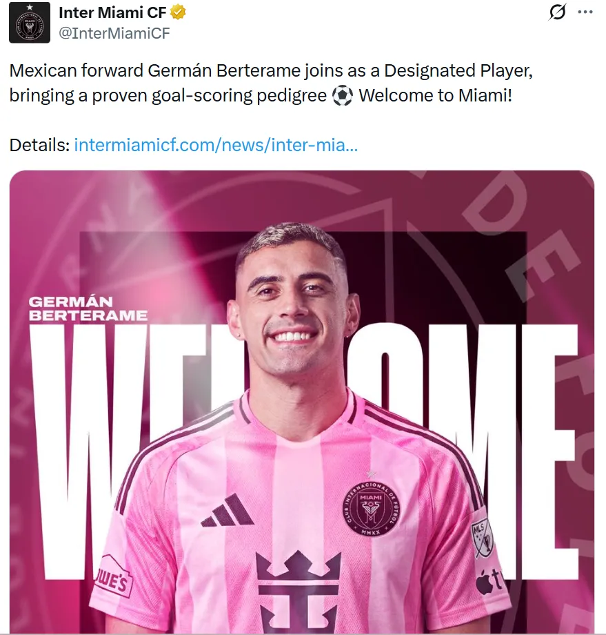 - Germán Berterame deja Rayados de Monterrey para fichar oficialmente por el Inter Miami.