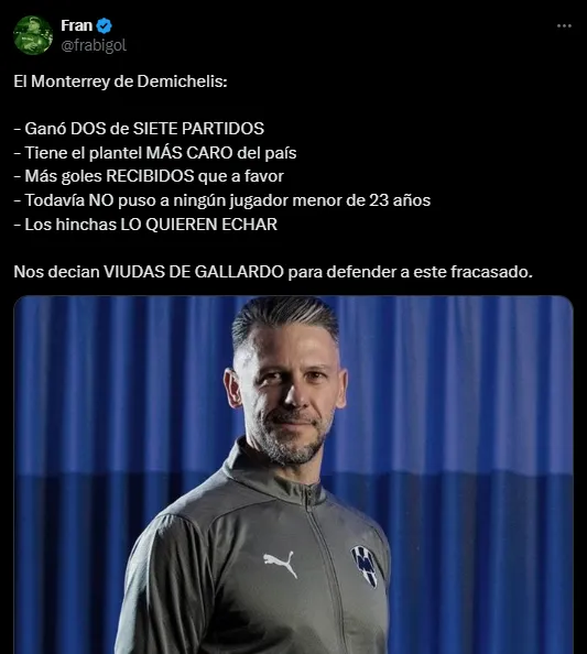 Sumado al enojo que de por sí tiene actualmente el público rayado, las repercusiones de los resultados de Demichelis en Argentina terminaron por hacer enajenar a los simpatizantes del equipo regiomontano, producto de los comentarios y posteos que llegaron desde el país sudamericano.