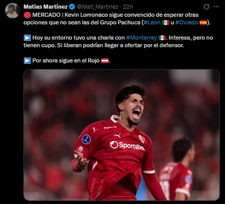 • Rayados de Monterrey entró en la negociación y busca fichar a Lomónaco para reforzar su defensa.
