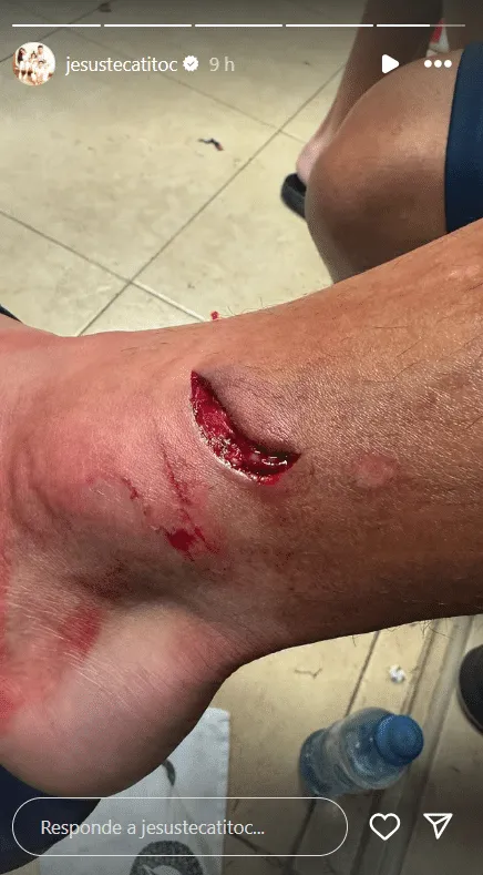 Esta entrada de Ramón Juárez le valió la tarjeta amarilla, pero todo Monterrey reclamó que debía ser expulsado. Una vez concluido el partido, Tecatito Corona subió una imagen en su cuenta de Instagram y mostró la herida profunda que le generó la acción con el defensa de Las Águilas.