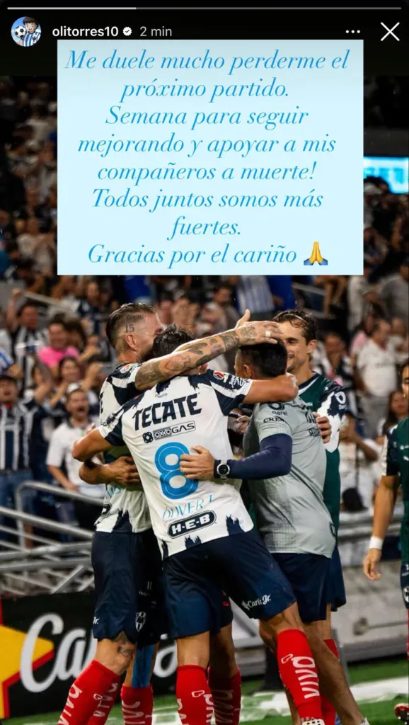 Tras esta noticia, para peor, el español ya sabe que no podrá estar presente en la siguiente jornada del torneo nacional, donde los dirigidos por Domenec Torrent jugarán ante Tigres UANL en condición de local por una nueva edición del Clásico Regiomontano. Tras el duelo, el jugador publicó un posteo.