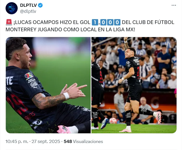 Lucas Ocampos, futbolista argentino que juega en Rayados, anotó el 1-0 parcial de su equipo frente a los Guerreros para que su equipo se vaya arriba en el marcador en la primera mitad. Pero el mismo no solo le está dando los tres puntos porque también fue histórico por un motivo en particular.