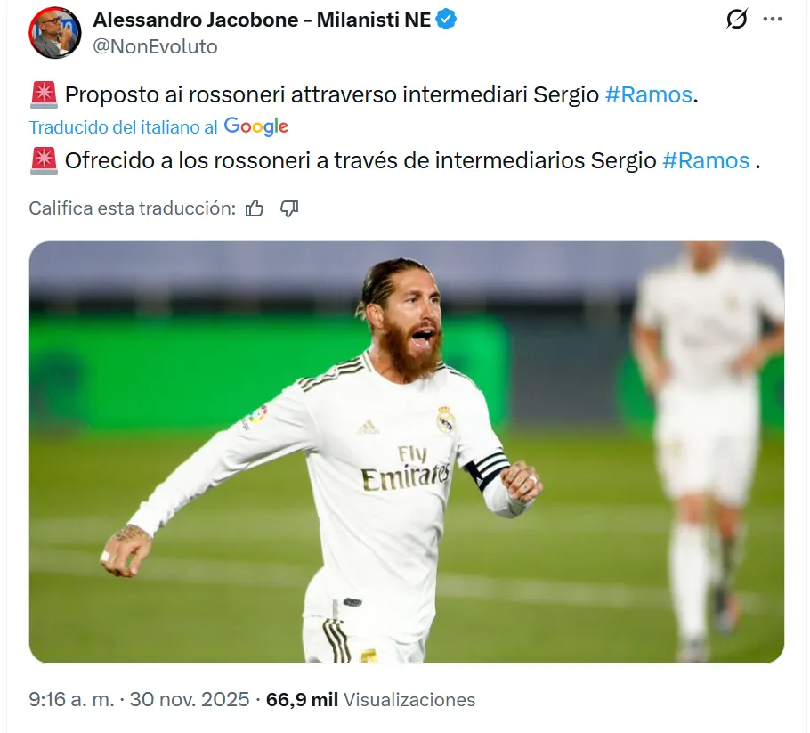 De acuerdo a la información del periodista Alessandro Jacobone, Sergio Ramos ha sido propuesto al AC Milan a través de intermediarios, con el objetivo de volver a la élite y a uno de los mejores equipos de la historia del Viejo Continente.