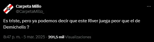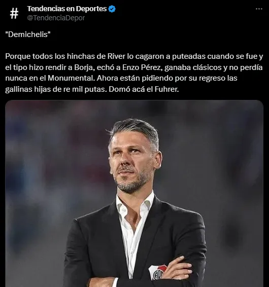 El nombre del estratega argentino se ha reiterado entre los fanáticos del ‘Millonario’ dado que han perdido la paciencia con el sucesor de Demichelis, Marcelo Gallardo, un ídolo de la institución pero que no le encuentra la vuelta en su segundo ciclo en River Plate en resultados y en identidad.
