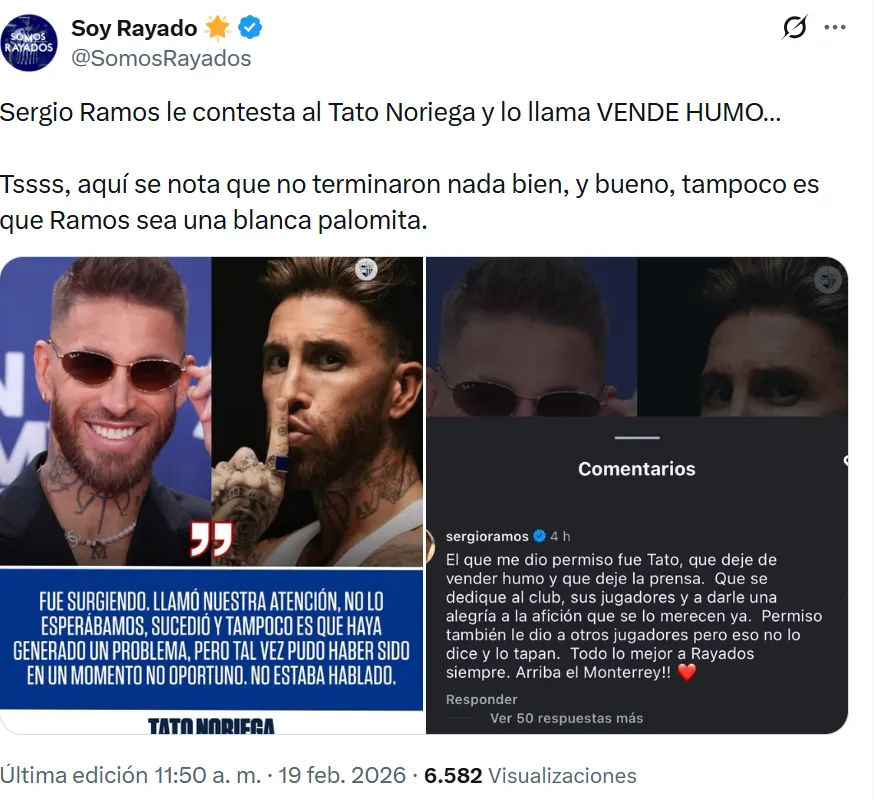 Lejos de esconderse, Ramos rompió el silencio y le contestó con todo a Noriega: “El que me dio permiso fue Tato, que deje de vender humo y que deje la prensa. Que se dedique al club, sus jugadores y a darle una alegría a la afición que se lo merecen ya. Permiso también le dio a otros jugadores, pero eso no lo dice y lo tapan. Todo lo mejor a Rayados siempre. Arriba el Monterrey!!”.