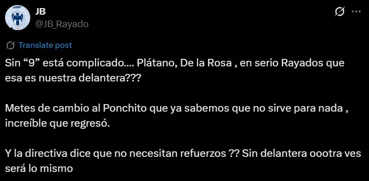 Por otro lado, también se pudieron leer críticas por el rendimiento de algunos futbolistas tales como Jorge Rodríguez y Santiago Mele, portero uruguayo que fue la única contratación de Rayados en este mercado de fichajes e hizo su debut en la portería de La Pandilla reemplazando a un histórico como Esteban Andrada.