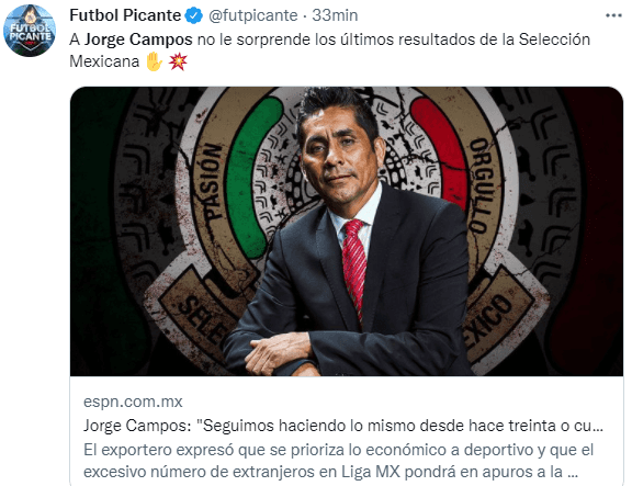 “Les advertí que Estados Unidos superaría a México.El sistema de hacer las cosas es el mismo de siempre. Están haciendo lo mismo desde hace treinta o cuarenta años y la prueba está en que la Liga MX cuenta con múltiples extranjeros“, disparó Campos en diálogo con ESPN.
