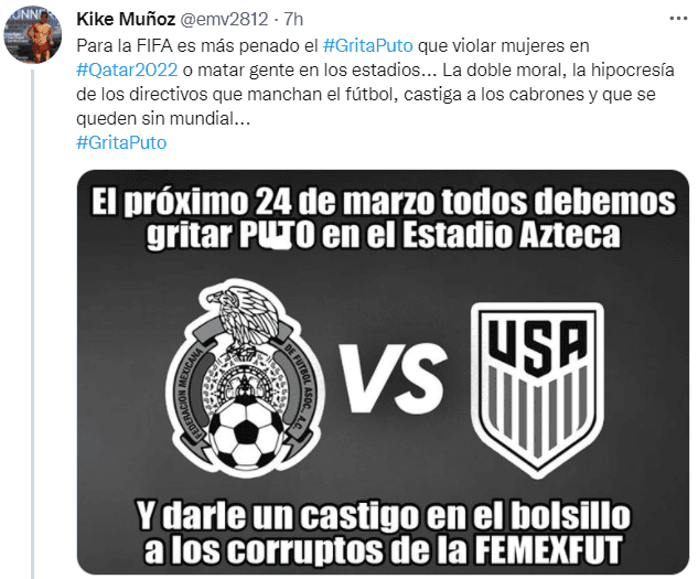 A través de las redes sociales, distintos usuarios tomaron comenzaron a incentivar a que se replique el famoso grito homofóbico durante el partido que la Seleción de México y Estados Unidos disputaránpor el octagonal final de Eliminatorias Concacafrumbo a Qatar 2022. El mismo se jugará el próximo 24 de marzo en la cancha del Estadio Azteca.