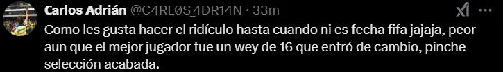 “Cómo les gusta hacer el ridículo hasta cuando ni es fecha FIFA, selección acabada”, “creo que es el partido más horrible que he visto, ni las manos metieron”, “un solo tiro a portería en 90 minutos, una verguenza “ y “dan pena”, fueron algunos de los mensajes que dejaron los fanáticos para expresar su descontento.