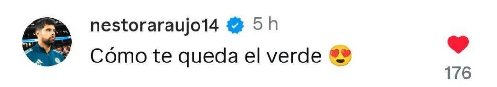 Incluso, uno de sus compañeros de equipo, Néstor Araujo le comentó en la publicación: “Cómo te queda el verde”, haciendo alusión a los colores del equipo nacional. Sin embargo, el jugador decidió apostar por seguir con el cuadro de las Barras y las Estrellas y aunque no pudo jugar en esta Fecha FIFA con el equipo de Pochettino por una lesión, volverá.