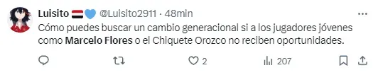 Las críticas de los aficionados a Jaime Lozano por no darle minutos a Marcelo Flores