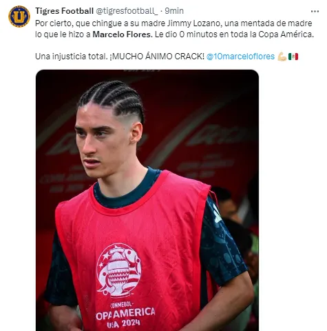 No obstante, esto no sucedió y varios chavos se quedaron sin jugar. Uno de los principales que exigió la afición es Marcelo Flores, el extremo y figura de Tigres UANL, quien no sumó minutos en la Copa América 2024.