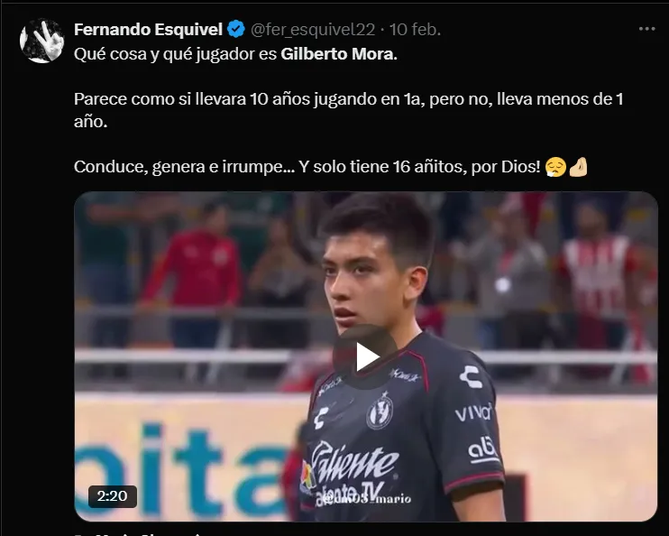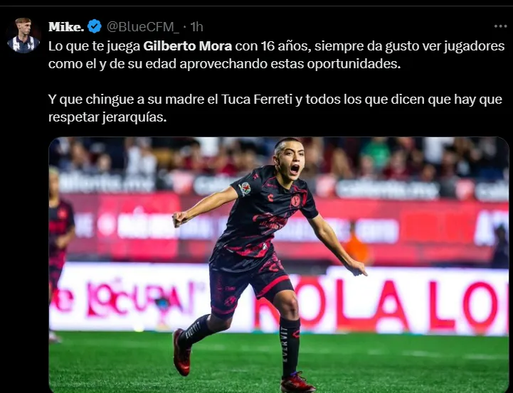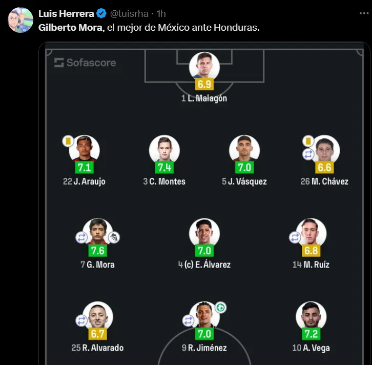 “Gilberto Mora en dos partidos ya hizo más en selección que el pendejo de Charly Rodríguez en toda su perra vida”, “Gilberto Mora, el mejor de México ante Honduras“, “Parece como si llevara 10 años jugando en 1a, pero no, lleva menos de 1 año”, fueron algunos de los mensajes que se vieron en ‘X’.