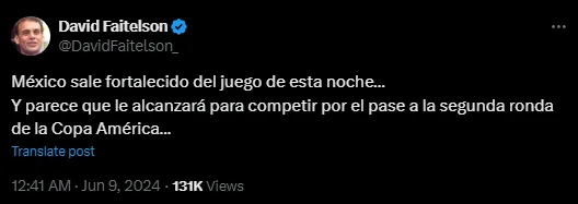 Además, el periodista rescató las ganas y el comportamiento del equipo de Jaime Lozano ante sus pares de Brasil, en la última presentación. “Con esa actitud y personalidad, la Selección puede y debe encontrar una escena competitiva; las sensaciones son buenas, pero es tal el estado de esta Selección que, cualquier síntoma positivo, tiene sabor a gloria”, agregó Faitelson en su cuenta.