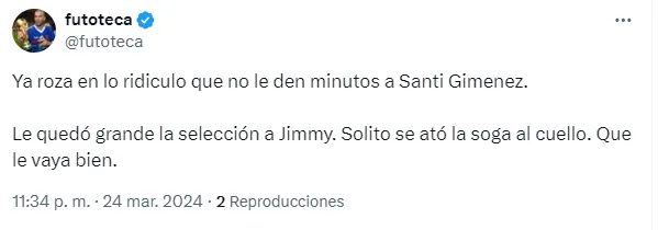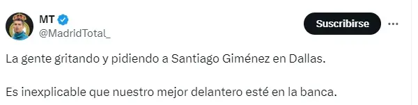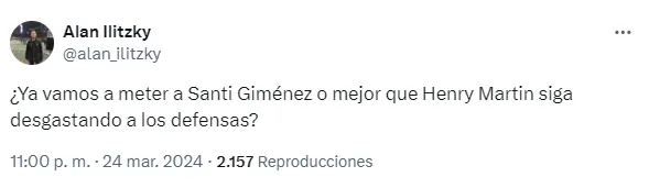 Los cuestionamientos hacia el entrenador de México aumentaron este domingo, cuando el Tri perdía con Estados Unidos y, a pesar de eso, Jaime Lozano seguía sin introducir a Santi Giménez. Y así se lo hicieron saber los aficionados al DT en redes sociales.