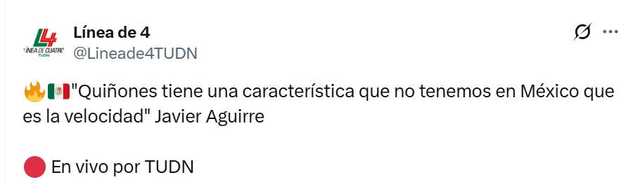 En las últimas horas, Aguirre habló sobre el delantero y reveló una característica que, según él, lo diferencia del resto de los futbolistas mexicanos actuales: “Quiñones tiene una característica que no tenemos en México, que es la velocidad”, expresó el técnico del Tri en diálogo con Línea de 4 de TUDN, dejando en claro que no hay otro jugador capaz de aportar esa rapidez que distingue al atacante.