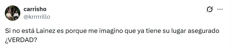 El reportero menciona que Diego Lainez tuvo la oportunidad de ser titular en el amistoso frente a Bolivia y que su rendimiento no fue bueno y, por esta razón, el Vasco ya no lo llamaría más en las convocatorias que quedan previo al Mundial 2026.