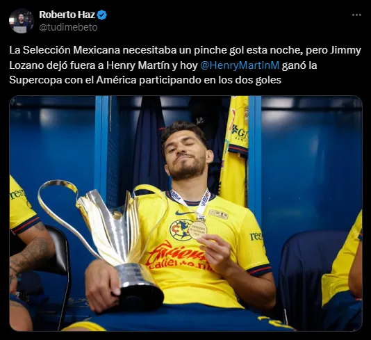Como si fuera poco, en la misma jornada en la que el ‘Tri’ necesitaba un gol para clasificar a cuartos de final y no lo convirtió, Henry anotó en la Supercopa de la Liga MX, para darle el tanto del título al conjunto azulcrema ante Tigres UANL, su segundo gol consecutivo para salir campeón (venía de marcar en la final del Clausura 2024).
