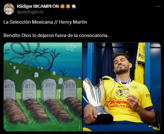Se trata de Henry Martin, delantero del América que no fue incluido entre los citados del director técnico del ‘Tri’ para disputar esta competencia, una medida que en su momento fue duramente reprobada por los simpatizantes que… ¿terminaron teniendo razón?