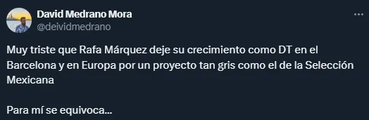 Sin embargo, ello no ocurrirá, y Rafa llegará a México para ser el auxiliar de Javier Aguirre en el proceso rumbo a la Copa del Mundo de 2026. Una vez terminado el torneo, Márquez asumiría como DT del Tri de cara al Mundial de 2030.
