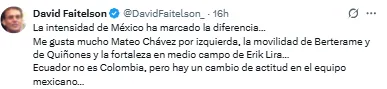 También recalca que enfrentar a Ecuador no es lo mismo que los cafeteros o algunas otras selecciones de mayor rango competitivo, apuntando a que si lo hicieron bien en esta ocasión se les podría dar continuidad y analizar, desde luego, que capacidades pueden llegar a tener en la próxima fecha FIFA y si repiten los buenos resultados, encaminarse al Mundial.