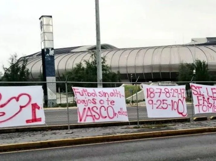 Aficionados de Monterrey colgaron mantas en las afueras del estadio