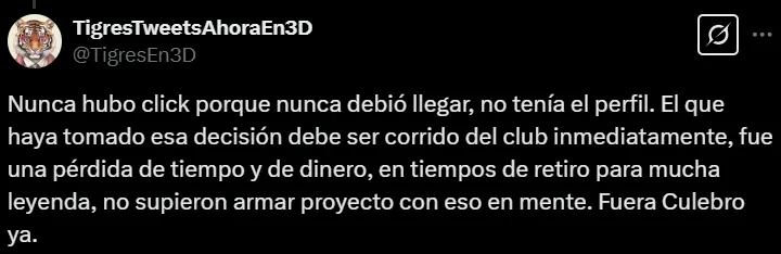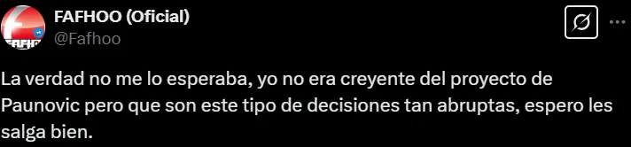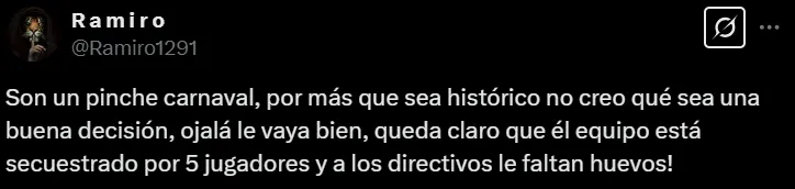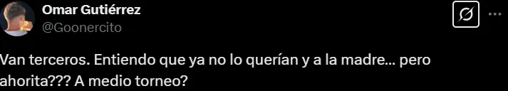 “Nunca debió llegar, el que haya tomado esa decisión debe ser corrido del club inmediatamente”, “¿Qué son este tipo de decisiones tan abruptas?”, “Muchas gracias Club” y “¿Ahora, a medio torneo?”, fueron algunos de los mensajes que escribieron los simpatizantes en X (ex Twitter).
