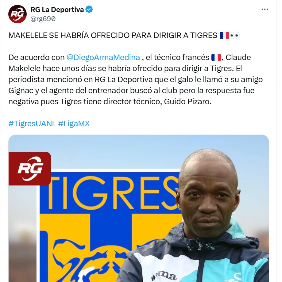 Mientras tanto, en las últimas horas revelaron que un histórico que supo brillar en varios equipos del futbol europeo como el Real Madrid y el Chelsea, habría sido ofrecido para ser el DT del equipo mexicano. Hablamos del francés, Claude Makélélé.