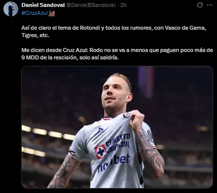 El tema es que mientras avanzan los días y se acerca el inicio del Clausura 2026 las posibilidades de que Rotondi salga de la plantilla celeste se están acortando y es que de acuerdo con el periodista de Multimedios, Daniel Sandoval, dio a conocer que en Cruz Azul no lo van a dejar ir a menos de que se cumpla con una condición.