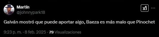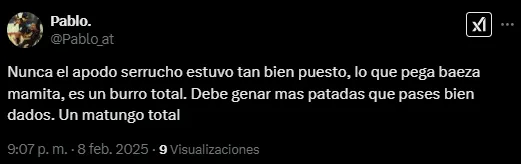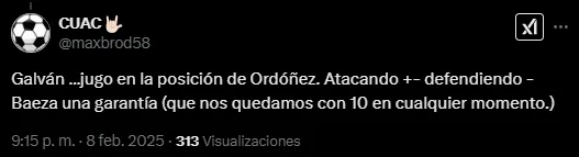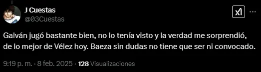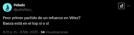 El experimentado volante, que nunca jugó en la Liga Argentina anteriormente y necesita un proceso de adaptación, agotó rápido la paciencia de una afición exigente y urgida de resultados. “El peor partido de un refuerzo de Vélez”, “Debe tener más patadas que buenos pases dados”, “Es una garantía, pero de que nos quedamos con diez” y “No tiene ni que ser convocado”, fueron algunos de los comentarios en las redes tras el empate de Vélez por la cuarta fecha del Torneo Apertura.