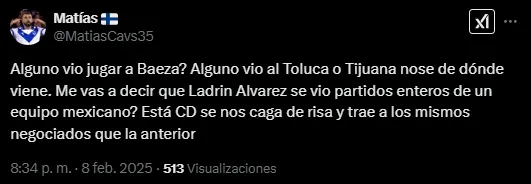 Algunos posteos de la afición de Vélez sobre Claudio Baeza: