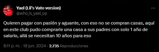 De este modo, aparecieron comentarios de todo tipo, haciendo apología a la baja oferta del ‘Xeneize’, y poniendo énfasis en el concepto social del “aguante” con el que Boca tentaría a los jugadores que sueña con contratar en cada mercado de fichajes.