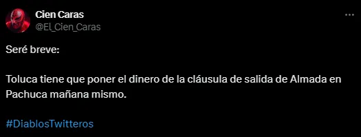 De momento, esto es sólo un deseo del público escarlata. Sin embargo, hacer el sueño realidad no es nada fácil: Guillermo Almada tiene dos años más de contrato en Pachuca, hasta el 2026, por lo cual su precio de salida podría tener un costo millonario, que aún se desconoce si la directiva de Toluca estaría dispuesto a pagar. Los próximos días serán claves para saber qué determinaciones fuertes tomarán las autoridades.