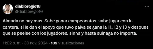 En los debates virtuales entre fanáticos, la opción de Almada ha sido la más reiterado entre los usuarios, que consideran que podría darle el salto de calidad que le falta al Toluca. El ‘plus’ que podría darle el charrúa, según han resaltado varios fanáticos, sería la competitividad en momentos claves o decisivos, que Renato Paiva no ha podido brindarles.