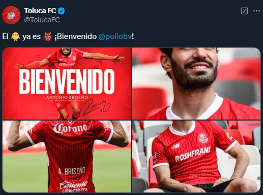 Pese a que era una operación que ya se conocía, Toluca hizo el anuncio oficial este jueves. Mediante un comunicado en redes, los Diablos Rojos le dieron la bienvenida al ex Chivas. “El pollo ya es diablo. ¡Bienvenido!”, escribió la cuenta del club, haciendo formal y públicamente conocido el acuerdo.