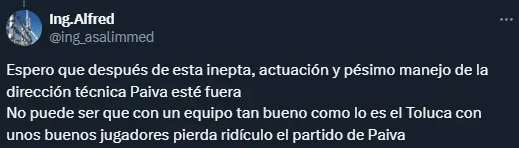 Por supuesto, y lógicamente, la afición de Toluca acabó con gran malestar por la actuación del equipo. Tal es así que, mediante las redes sociales, los aficionados no tardaron en señalar a los máximos responsables de la derrota ante el equipo azulcrema con grandes críticas.