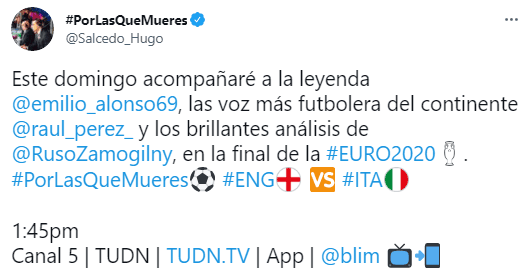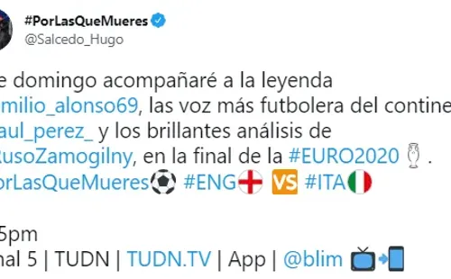 Televisa Deportes se vestirá realmente de gala para cederle los micrófonos al emblemático narrador, quien recién llegó a sus filas hace algunos meses, para estar a cargo de la Gran Final de la Eurocopa 2020: Será la voz de don Emilio Fernando Alonso la que relate las acciones desde el mítico Estadio de Wembley, el próximo domingo 11 de julio, en punto de las 14:00 horas, tiempo del centro de México.