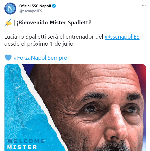 “Bienvenido Luciano, juntos haremos un gran trabajo”,lo recibió Aurelio De Laurentiis, dueño del cuadro napolitano, al exfutbolista, quien tuvo su última experiencia con Inter en 2019 y que comenzará a trabajar en club el 1 de junio.