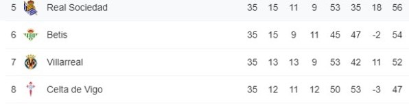 Si logra superar a Real Sociedad en las tres jornadas restantes (56 puntos), Betis no tendrá que hacer cuentas para ver que torneo internacional disputa el año que viene. Recordemos que en caso no conseguir el quinto lugar de LaLiga, deberá superar las fases previas de la Europa League entre los meses de julio y agosto con partidos que generarán un desgaste importante al final de temporada.