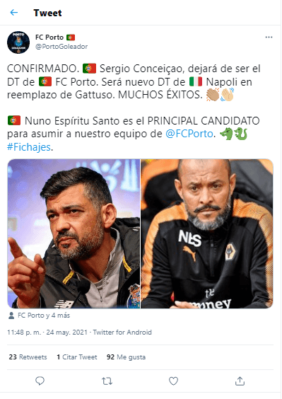 Cabe destacar que el portugués ya dirigió a otro mexicano: Jesús Tecatito Corona, a quien lo tuvo siendo el director técnico del Porto, equipo que dirigió desde el 2017, hasta el día de ayer.