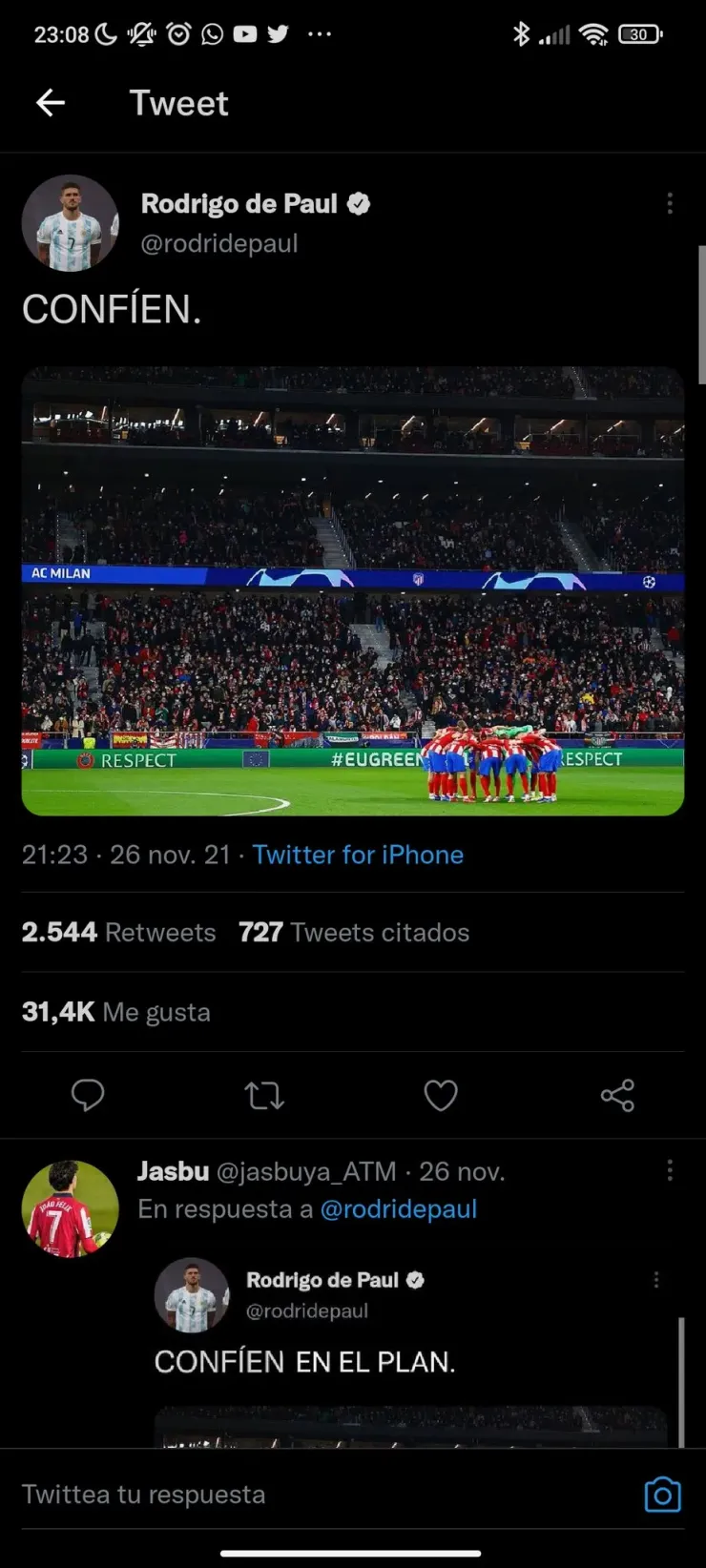 El conjunto Colchonero necestiaba un milagro para volver a disputar unos octavos de final de la Champions debido a que se encontraba último. Para acompañar al Liverpool a la próxima instancia los de Diego Simeone necesitaba ganar y que los de Klopp no pierdan ante Milan.