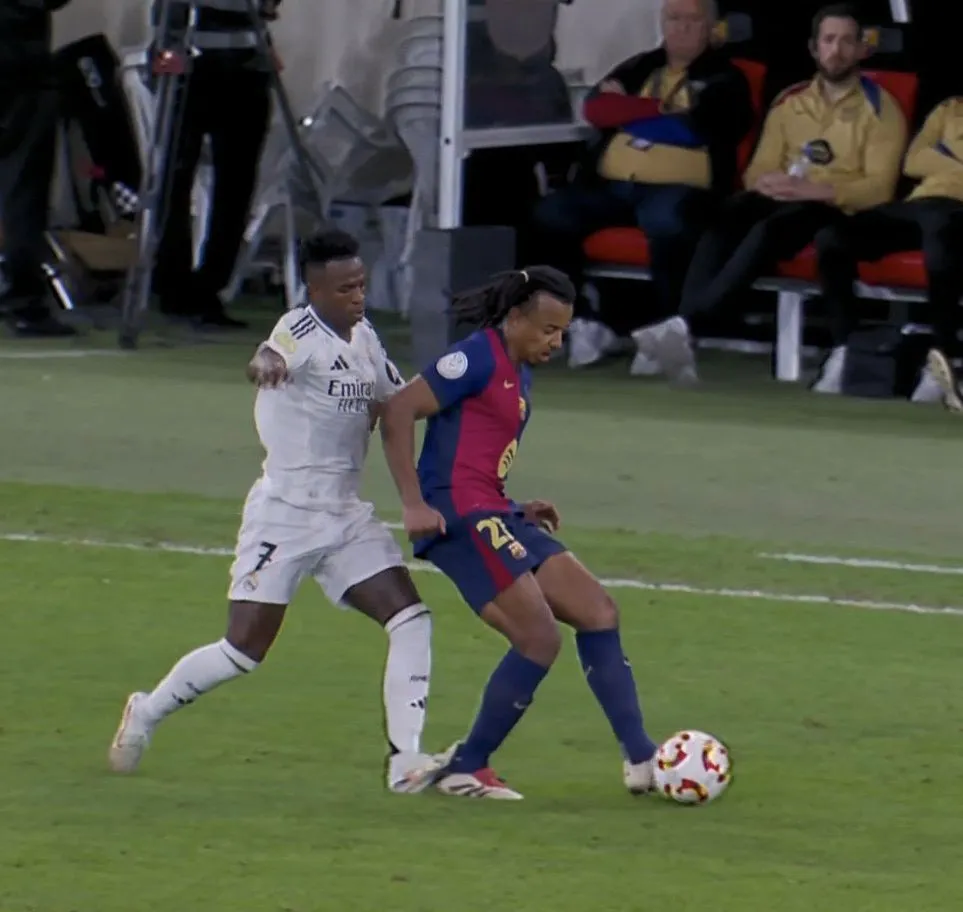 Vinicius recibió una tarjeta amarilla a los 55 minutos, pero minutos después le propinó un duro pisotón por detrás a Jules Koundé que Jesús Gil Manzano no lo consideró de amonestación. Tras esto, los aficionados del Barcelona estallaron contra el árbitro en redes sociales.