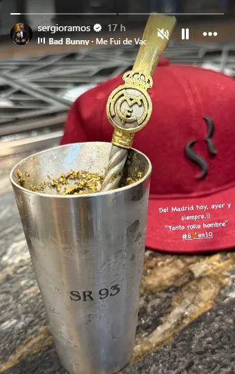 Sergio Ramos se mostró con un vaso con las siglas SR93 de su nombre y del minuto del histórico gol al Atlético Madrid en la final de la Champions, número que además utiliza como dorsal en su camiseta en Monterrey. Desde la distancia, el español muestra su apoyo al club que fue su casa durante una década.
