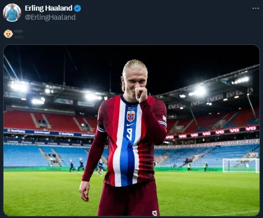 Tras haberse convertido en el máximo goleador histórico de la Selección Noruega, Haaland hizo un anuncio inesperado en sus redes sociales. Erling publicó una imagen de él con un balón sobre su abdomen, la cual acompañó con emoticonos en relación a que espera un bebé junto a su pareja.