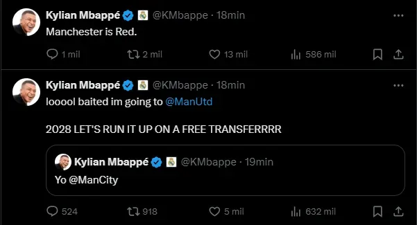 Otro posteo incluso daba indicios de que el mejor club de Manchester es Manchester United y que el jugador iría allí en 2028. Rápidamente las publicaciones se hicieron virales y surgieron todo tipo de memes y comentarios hacia el delantero.